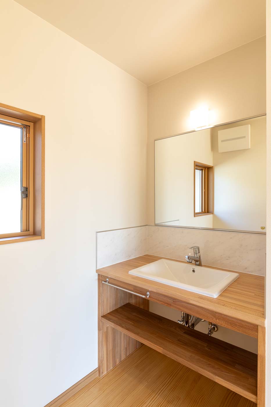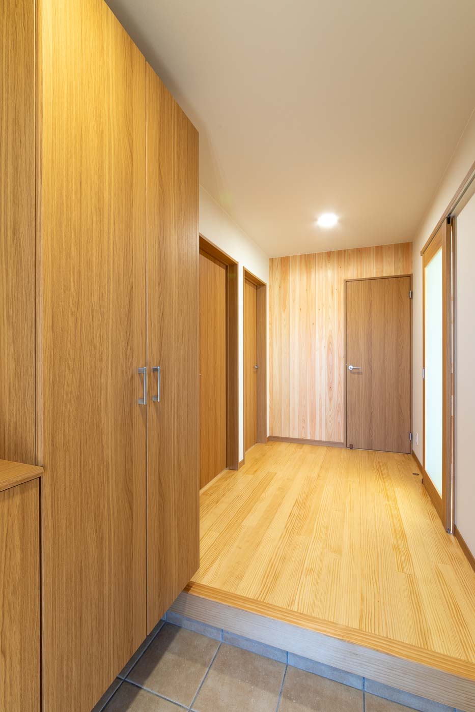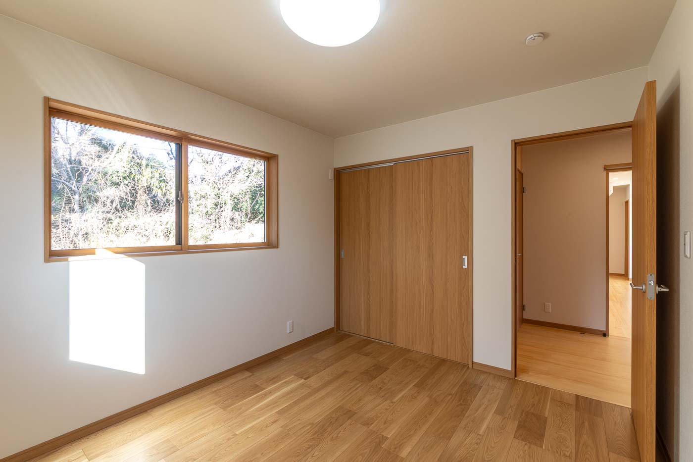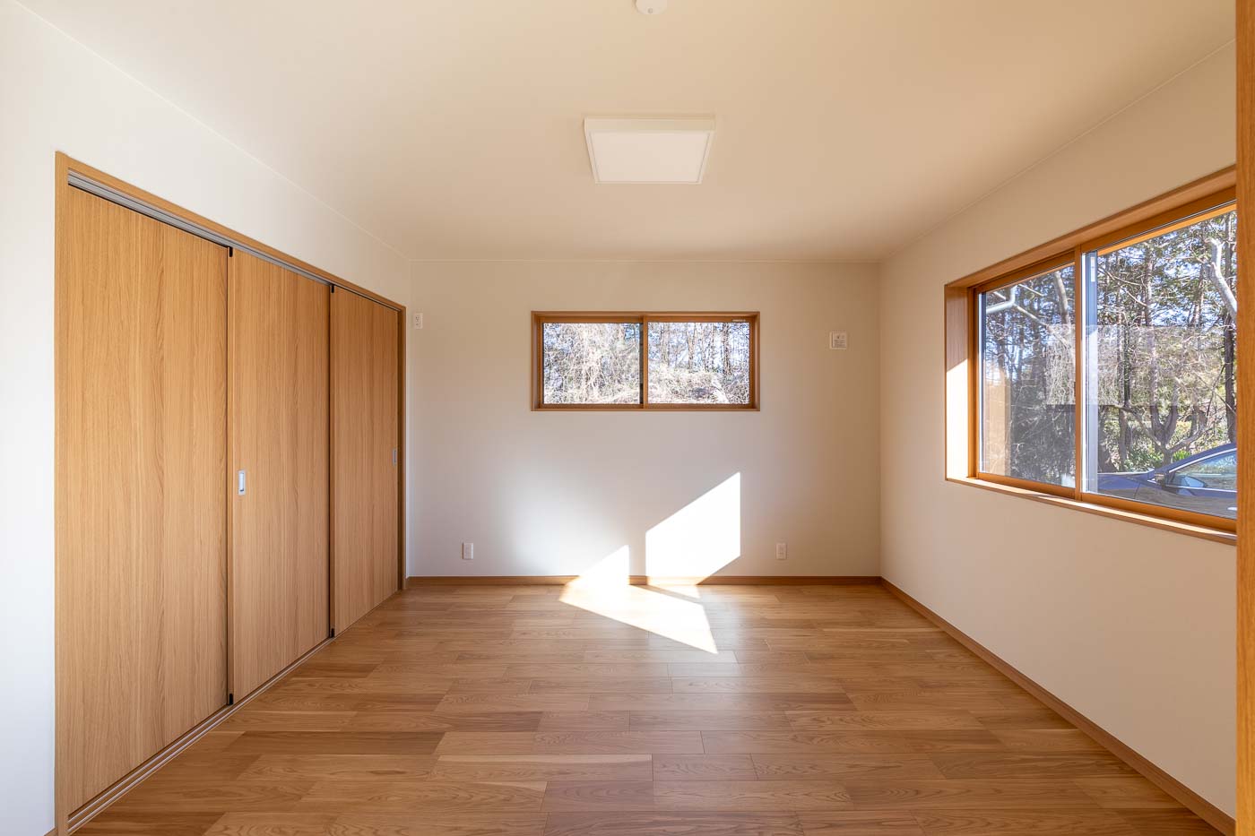 室内は無垢の柱や梁を現しとし、自然の持つ温かみのある雰囲気を創出しています。外部と内部の繋がりをもたせるため、デッキテラスの設置や軒を深くするなど、雨天時や夏の日射にも効果的です。