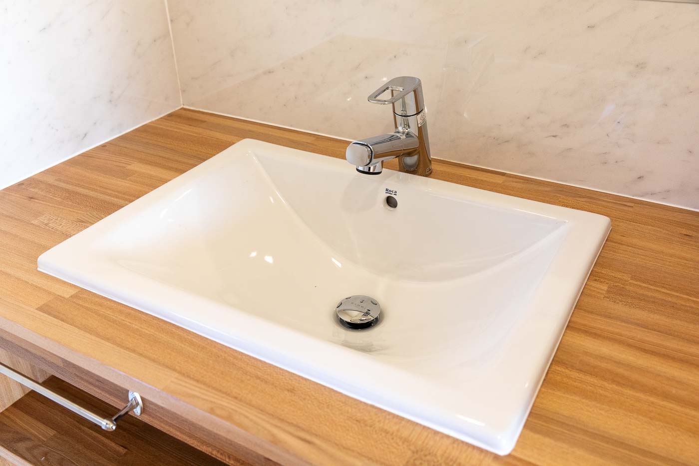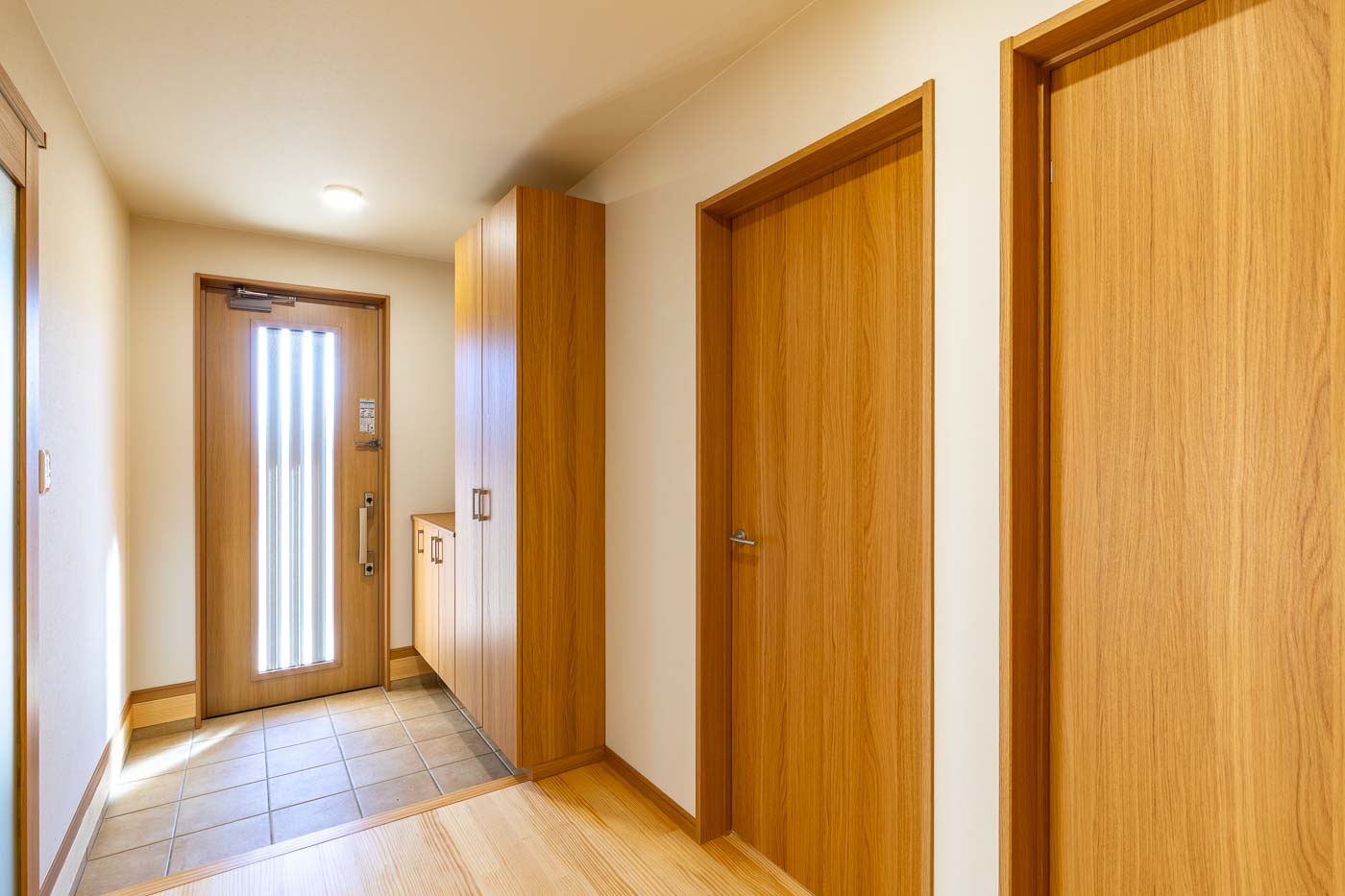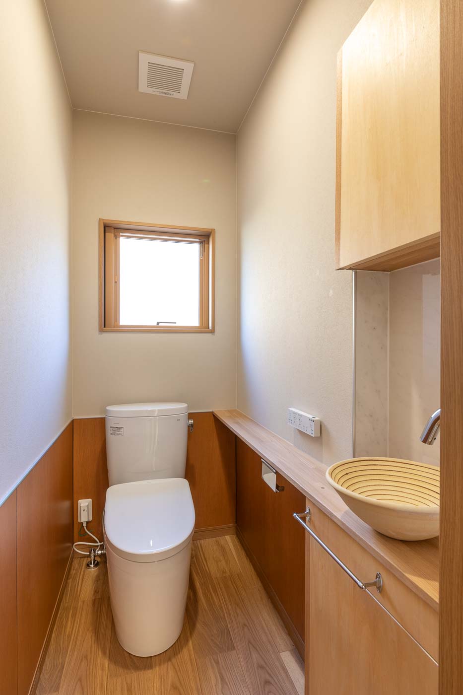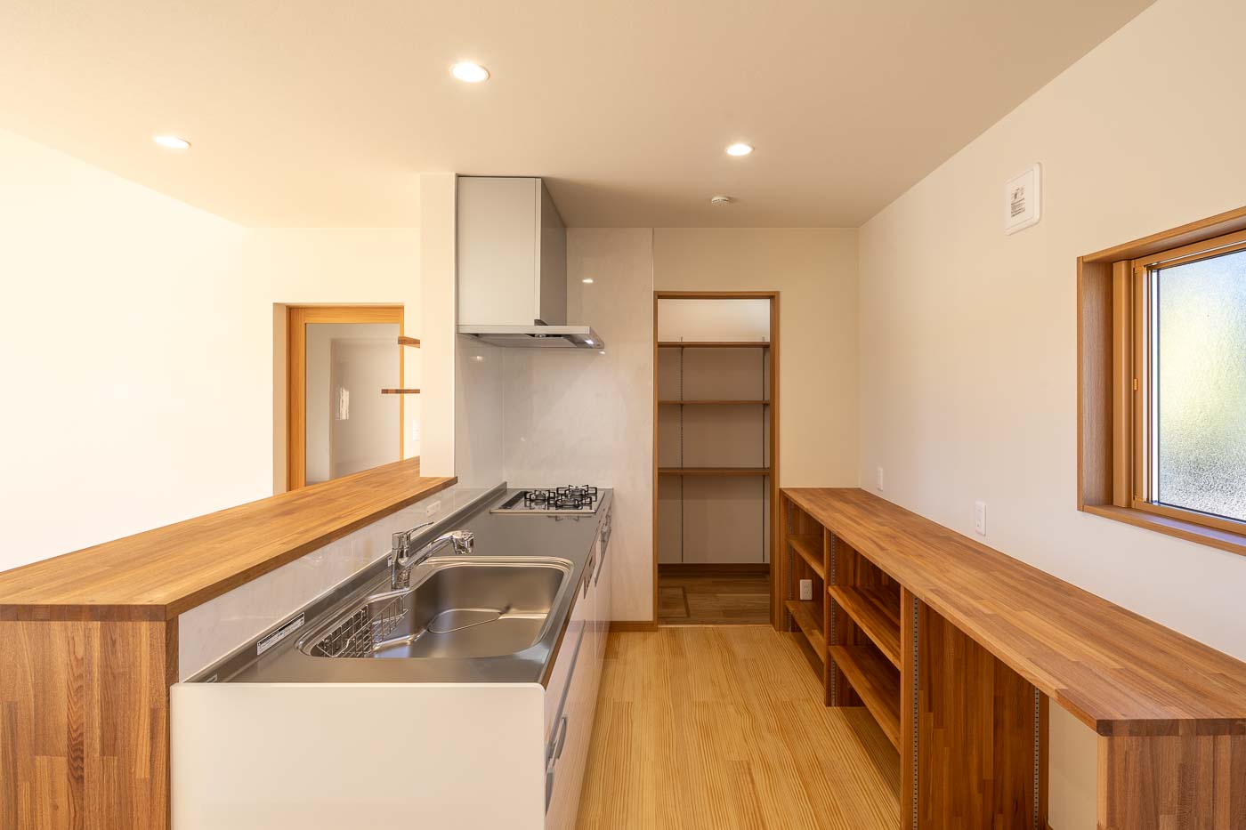 室内は無垢の柱や梁を現しとし、自然の持つ温かみのある雰囲気を創出しています。外部と内部の繋がりをもたせるため、デッキテラスの設置や軒を深くするなど、雨天時や夏の日射にも効果的です。