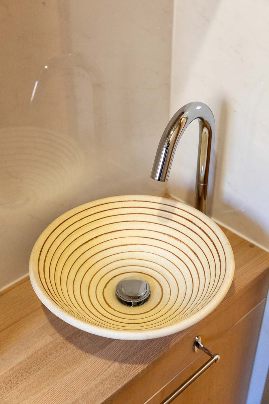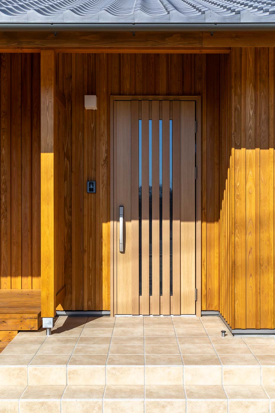 外観は周囲の環境に馴染むように、あまり作り込まず全体に和の素材感でラフなテイストとしました。深い軒の屋根瓦と壁の杉板が陰影をつくり、シンプルながら深みのある表情に仕上がりました。