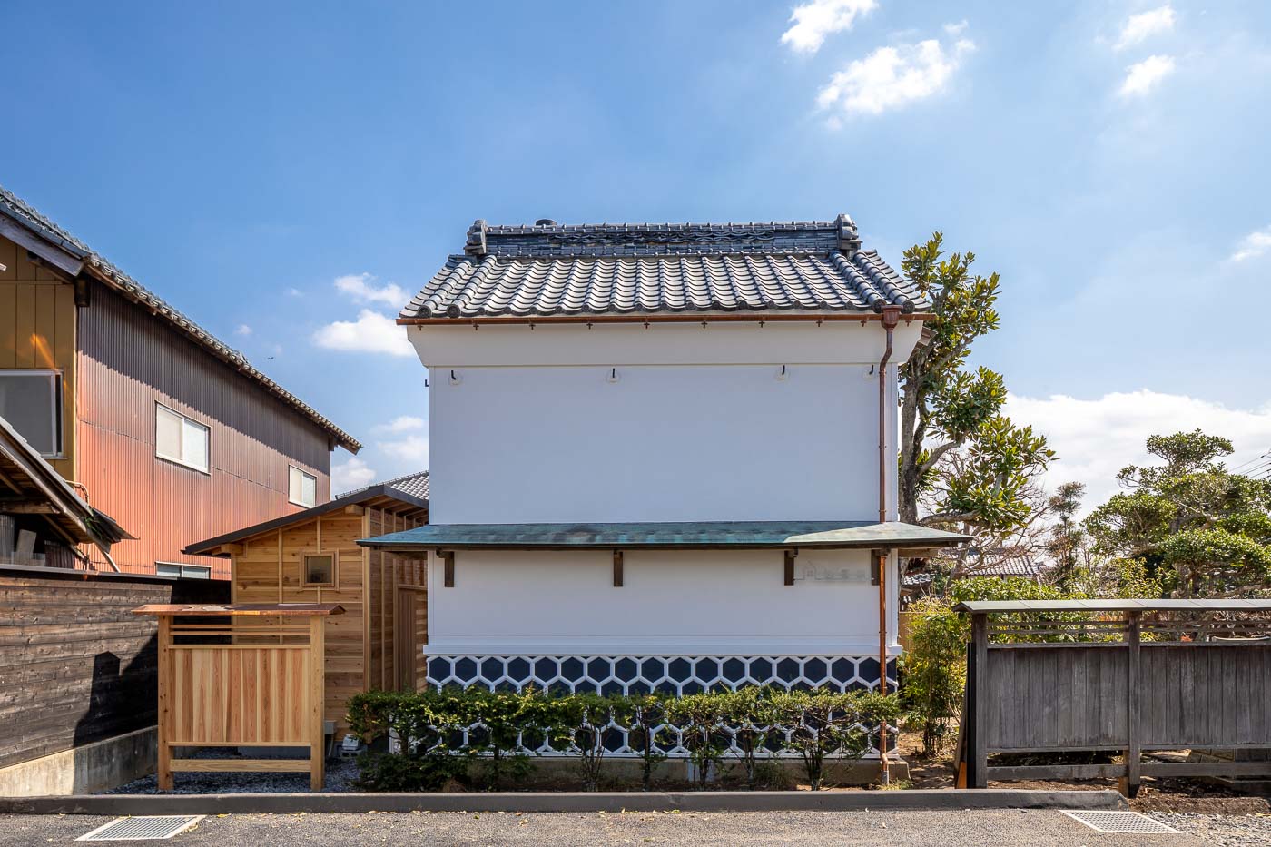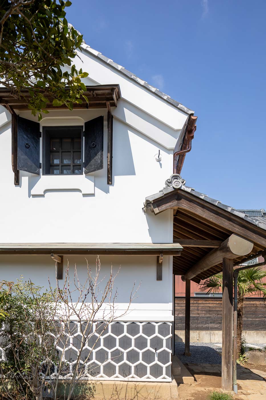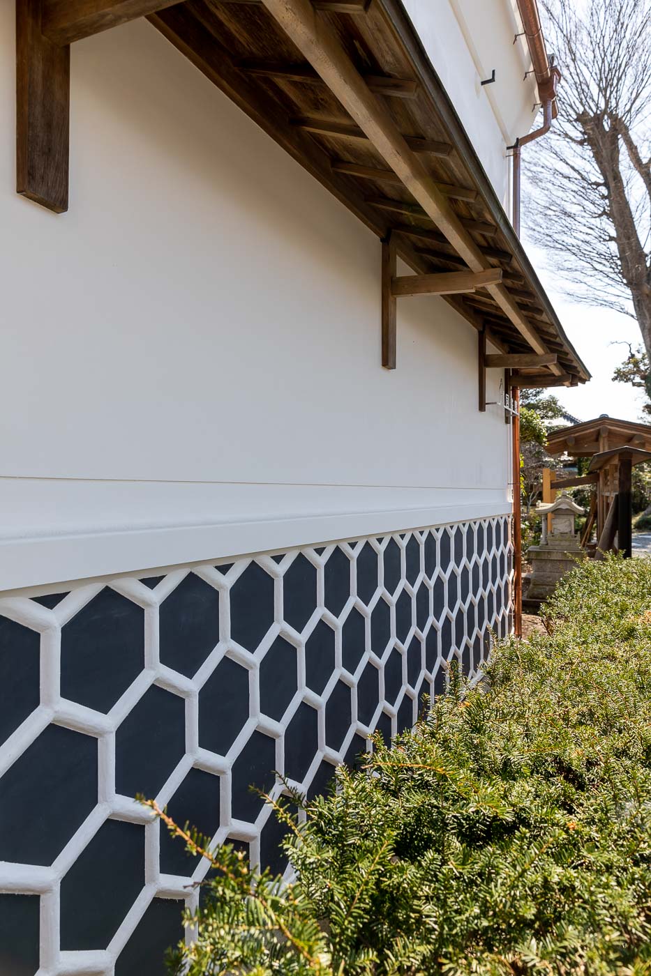 外壁は伝統的左官技術による漆喰塗、腰壁部分は失われていた”なまこ壁“を新しい意匠で再生し、かつての豊かな農村の原風景を保全するデザインを追求しました。
