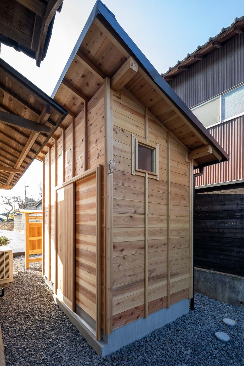 図書館の外には、ツリーハウスや屋外の読書スペース、パーゴラもあり、子供から大人まで、外遊びやゆっくりと読書を楽しめるスポットが散りばめられています。また蔵に隣接して木と漆喰によるミニマリズムな外トイレを建てました。