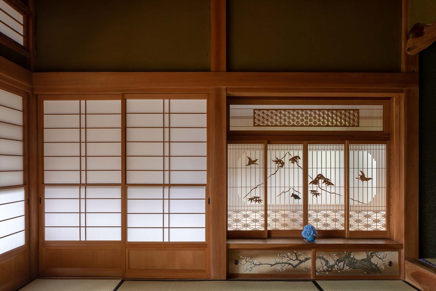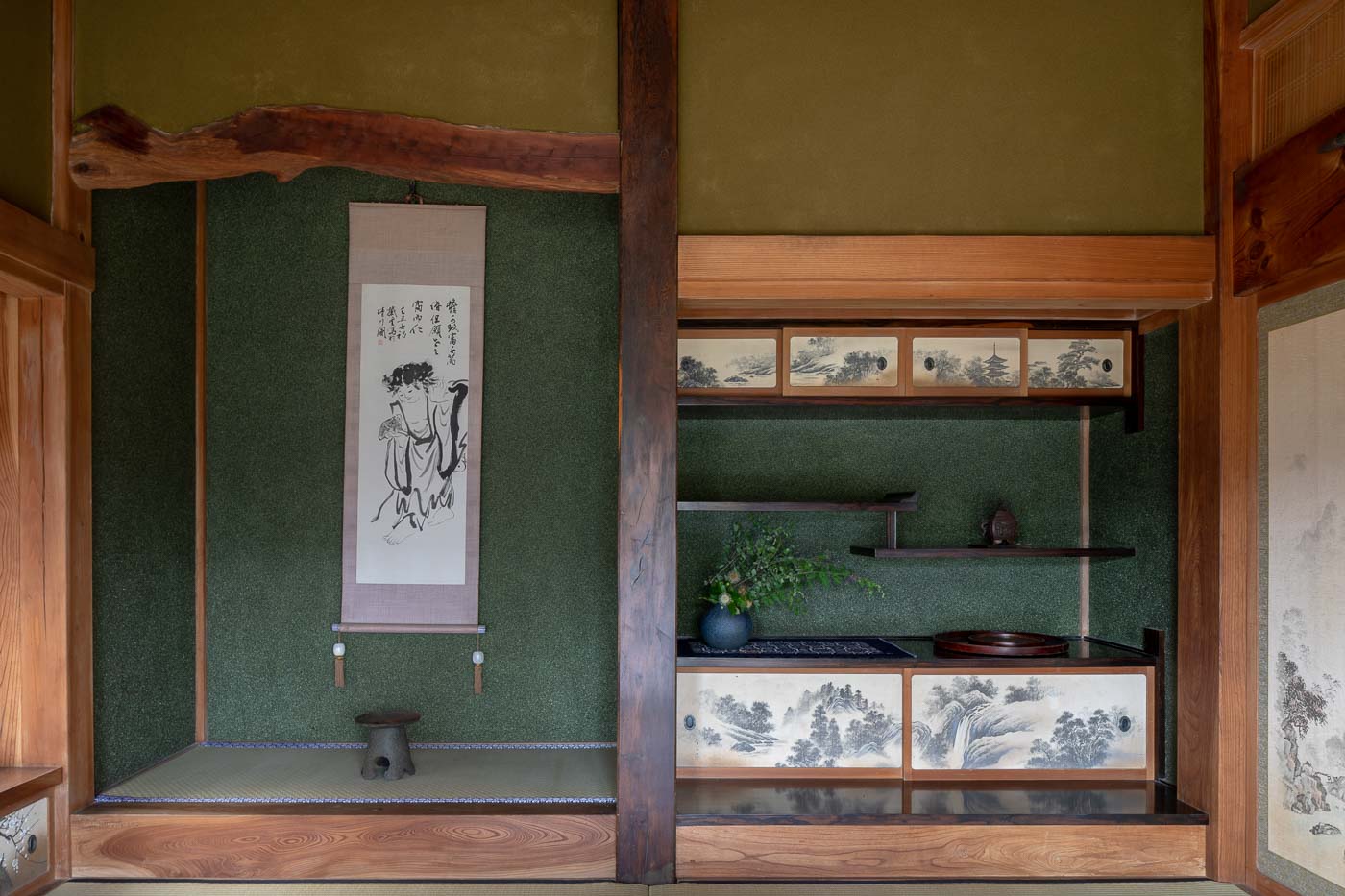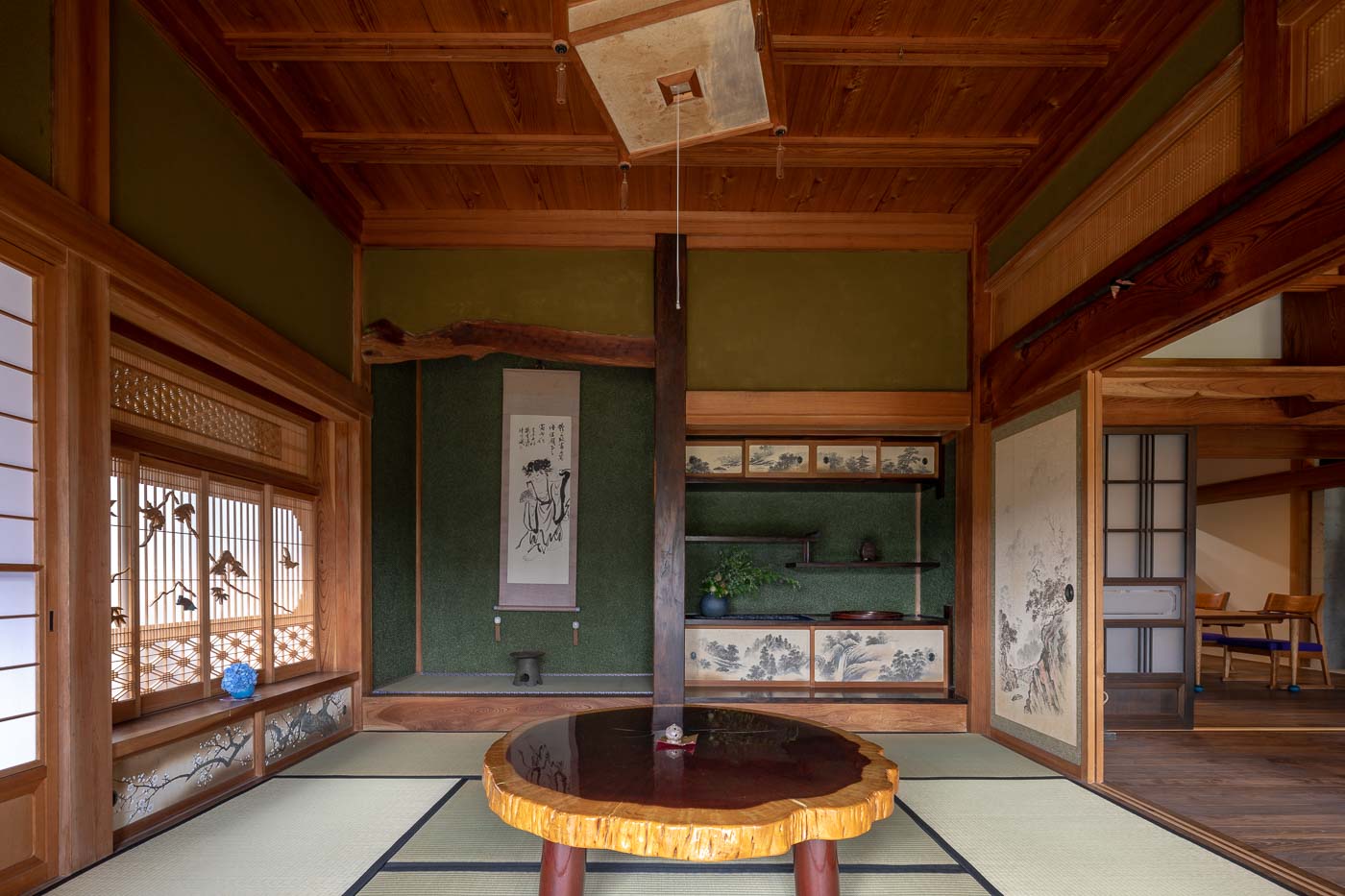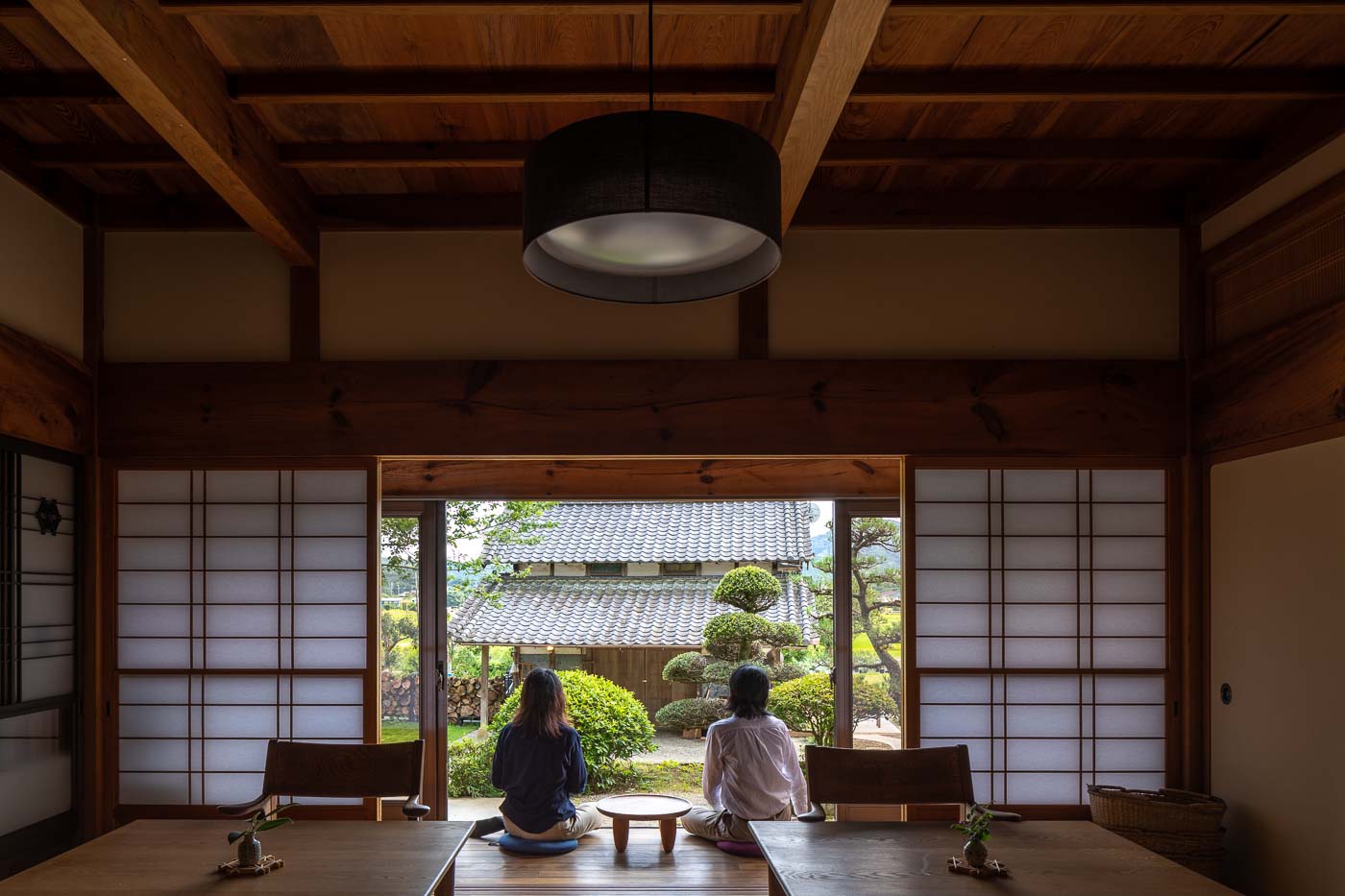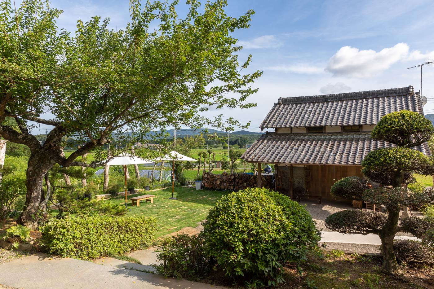 母屋は築40年を超える古民家で、里山の木々を使って地元の大工さんによって丁寧に作られた木構造の伝統的農家住宅。