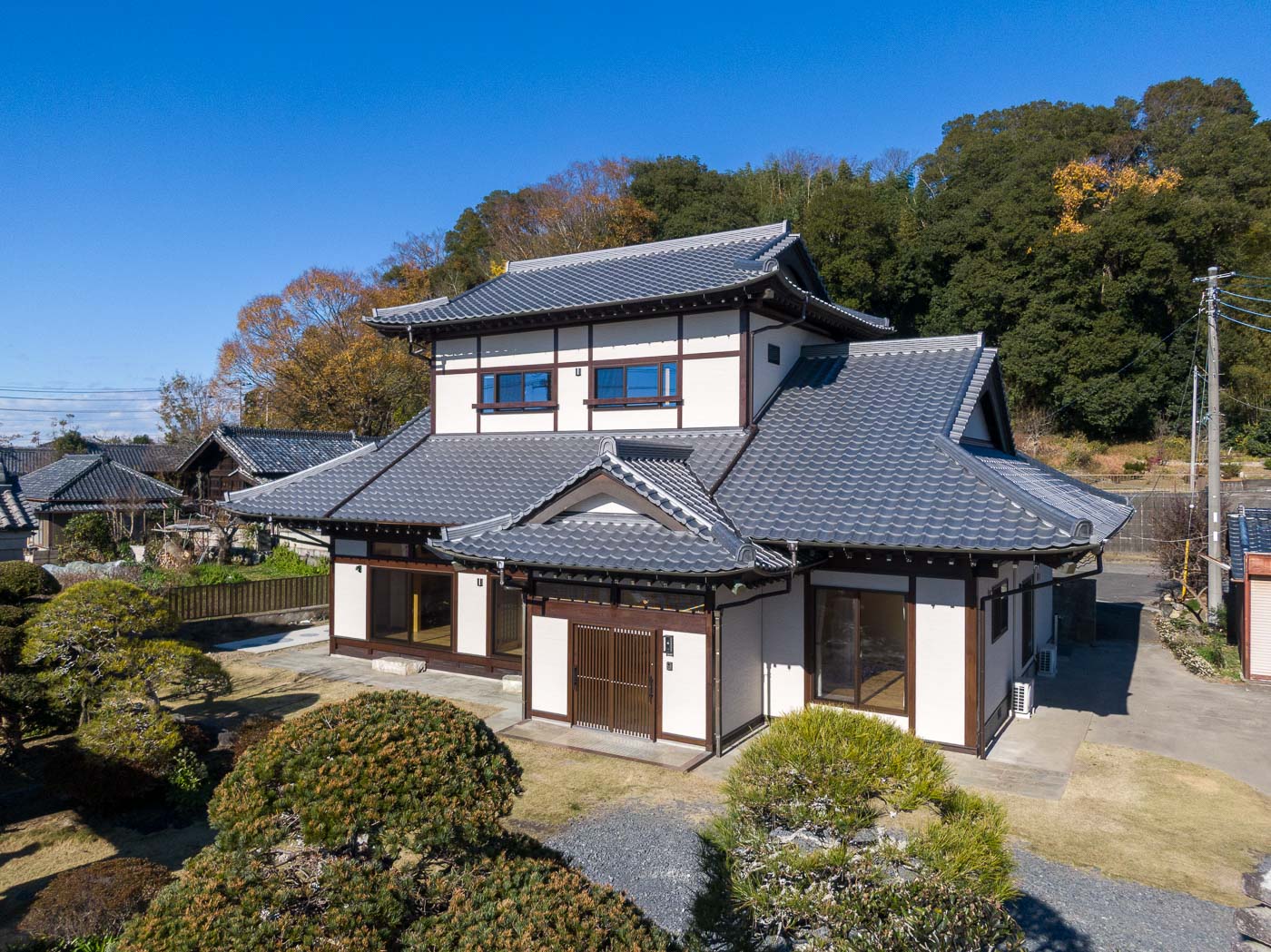 重い瓦屋根を葺き替え軽量化(棟瓦を低く、鬼瓦を小さくする、役物瓦を減らす等)をはかり、経年劣化等による柱や梁の補強し、開口部を減らし耐震壁を増やすなど耐震性能を高めました。また高性能樹脂サッシュと、高性能断熱材を敷き込み温熱環境を高めました。