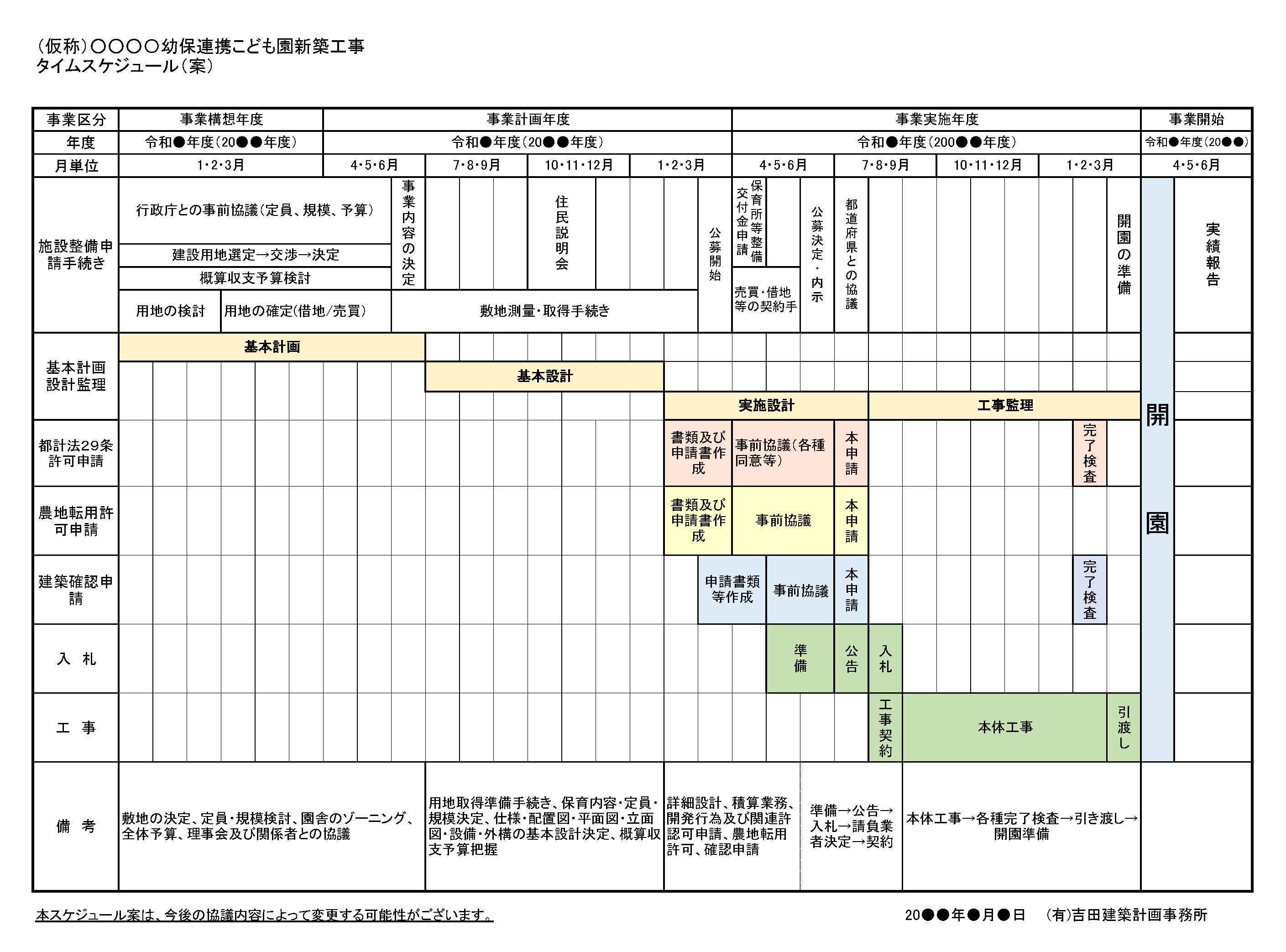各市町村で実施されます、認可保育所整備事業の公募型プロポ-ザルにあたっての設計協力(一部有料)を致します。