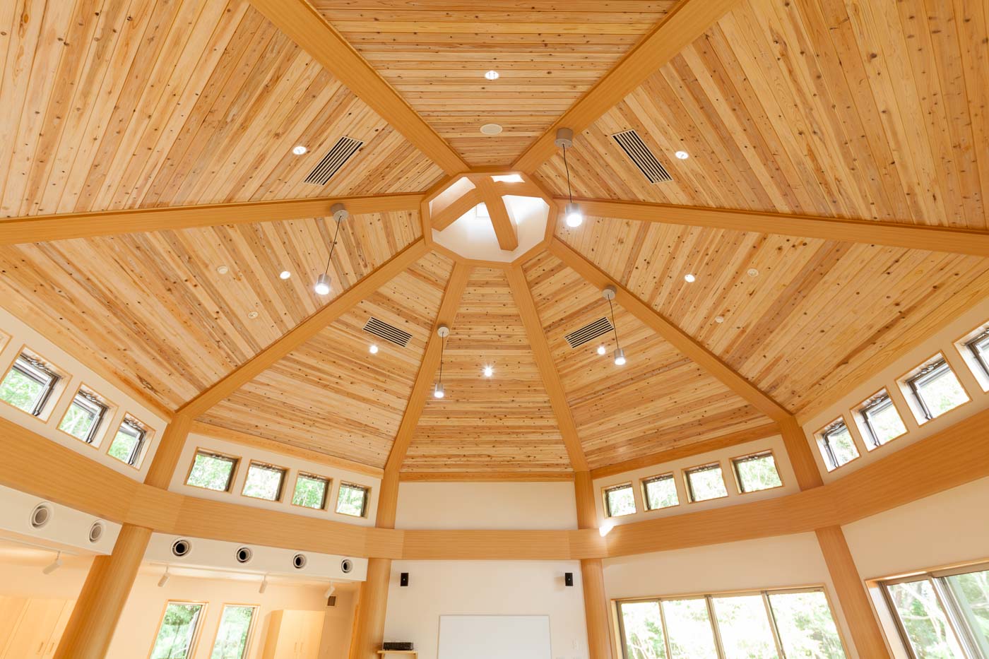 吉田先生が提案してくださったのは、八角形の部屋が二つつながっている形、しかも吹き抜けで新鮮でした。完成予想図は、理事長が「どこのペンションの写真?」と見間違えるほどモダンでした。