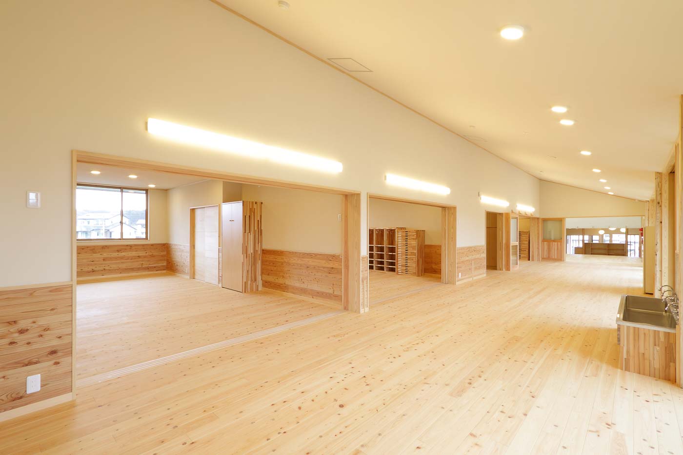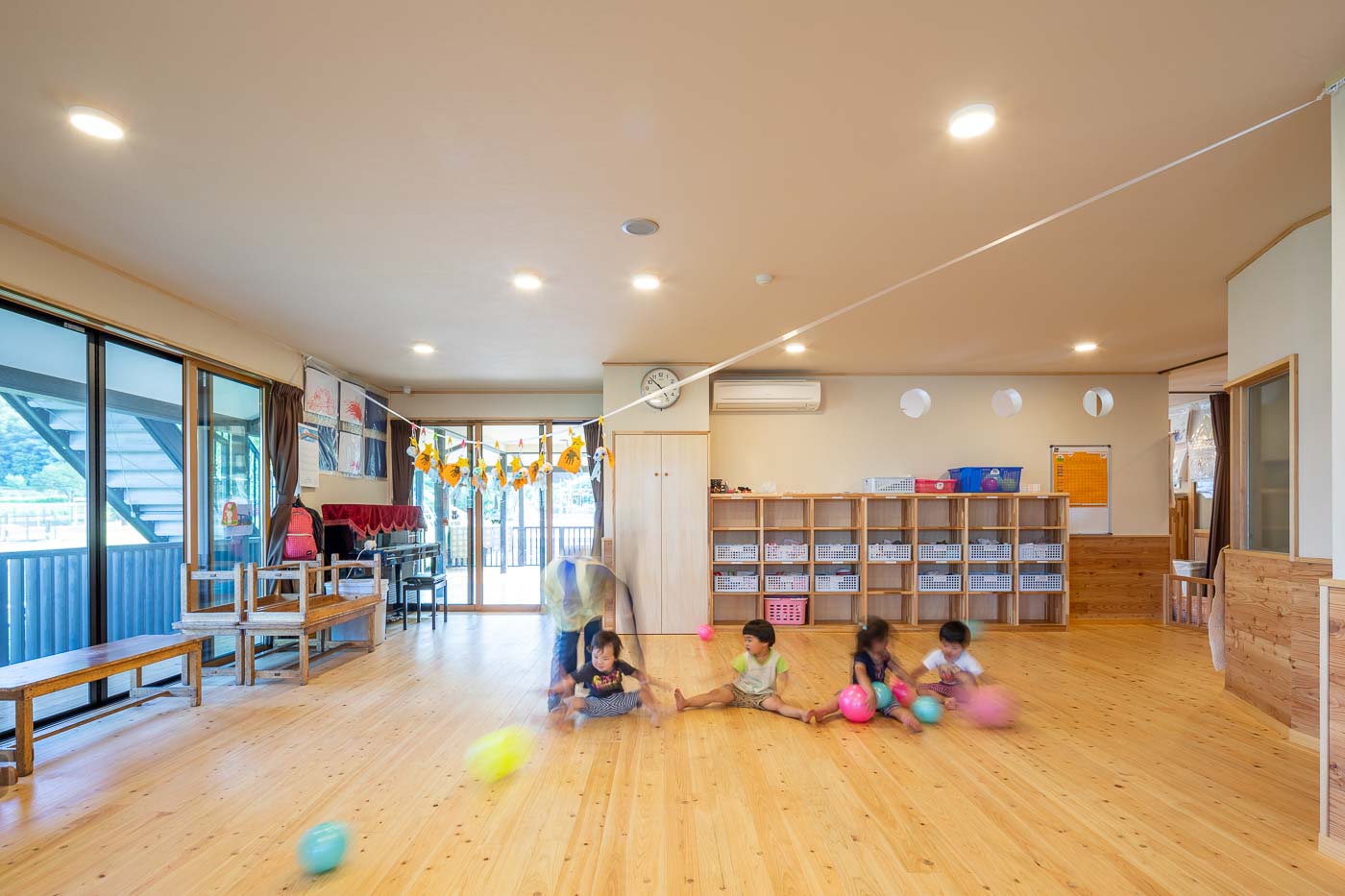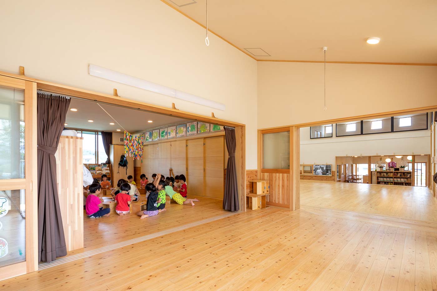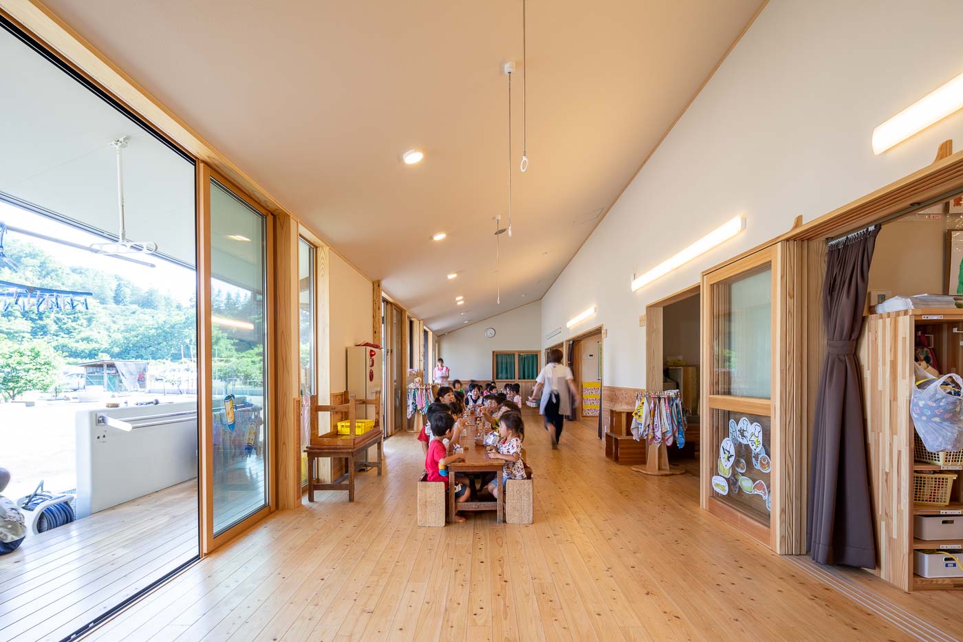 日常生活において、内部と外部を幾度も往来し、周囲の自然環境と触れ合いながら、年齢に応じた様々な体験・経験のできる環境づくりに配慮しました。