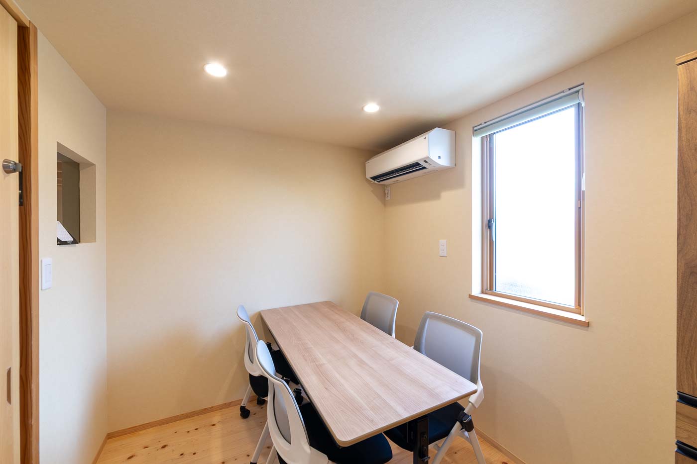 「あおば」は、定員10名の児童発達支援施設です。建物は木造平屋建ての小規模な建物で、茨城県産材の杉・檜を内外装にし、天井が高くのびのびした温かみのある空間です。