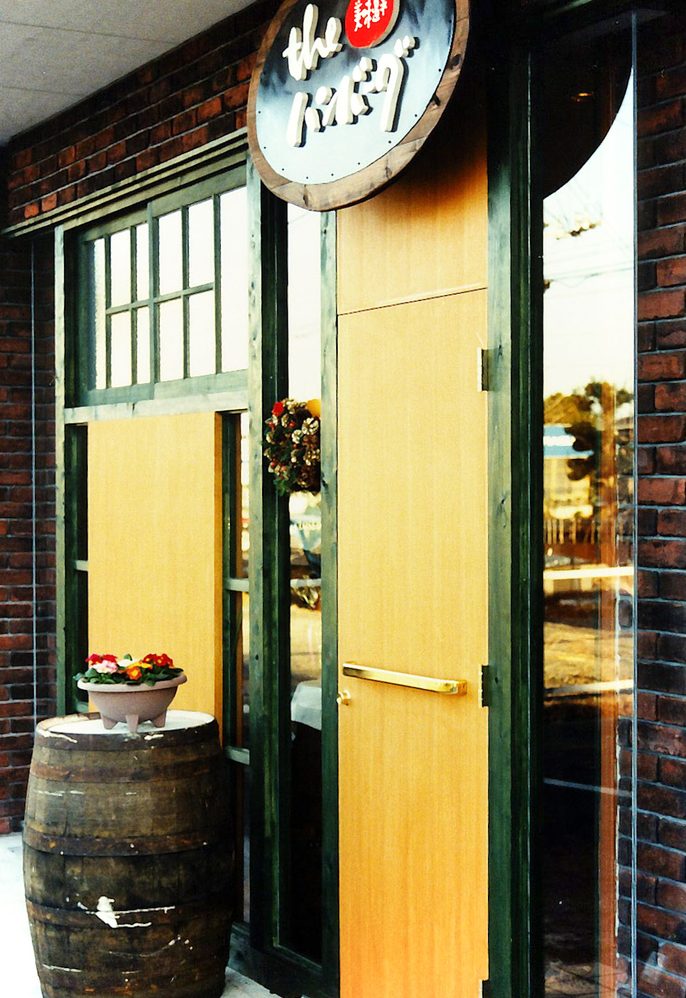 この店は名前の通りハンバーグの専門店です。オーナーのハンバーグに対するこだわりは強く、常に本物の味を追求しています。その思いを建物へ反映できればと考え、低兼でありながらも素材の持ち味をいかしたデザインを追及しました。材木はすべて一等品を使い、それにてレンガと白壁と組み合わせたぬくもりのある建物としました。