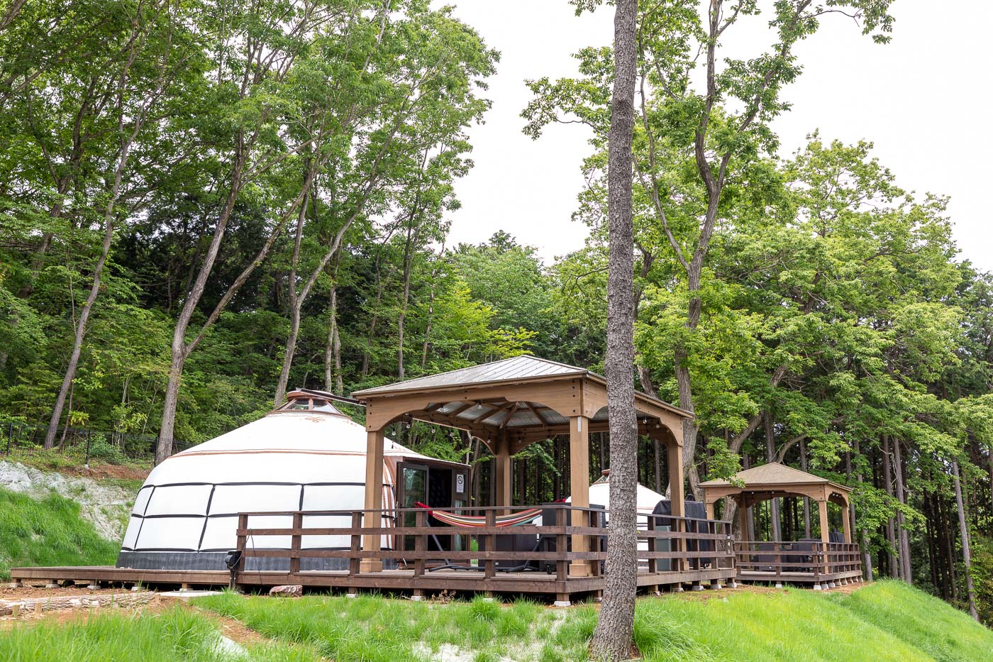 筑波山の大自然とモンゴル文化のぬくもりに触れながら、心も身体も解放される非日常のひとときをお楽しみいただきたいと存じます。キャンプ場の一番下に木造のカフェ併設のトイレ・浴室(男女別)も完備されています。