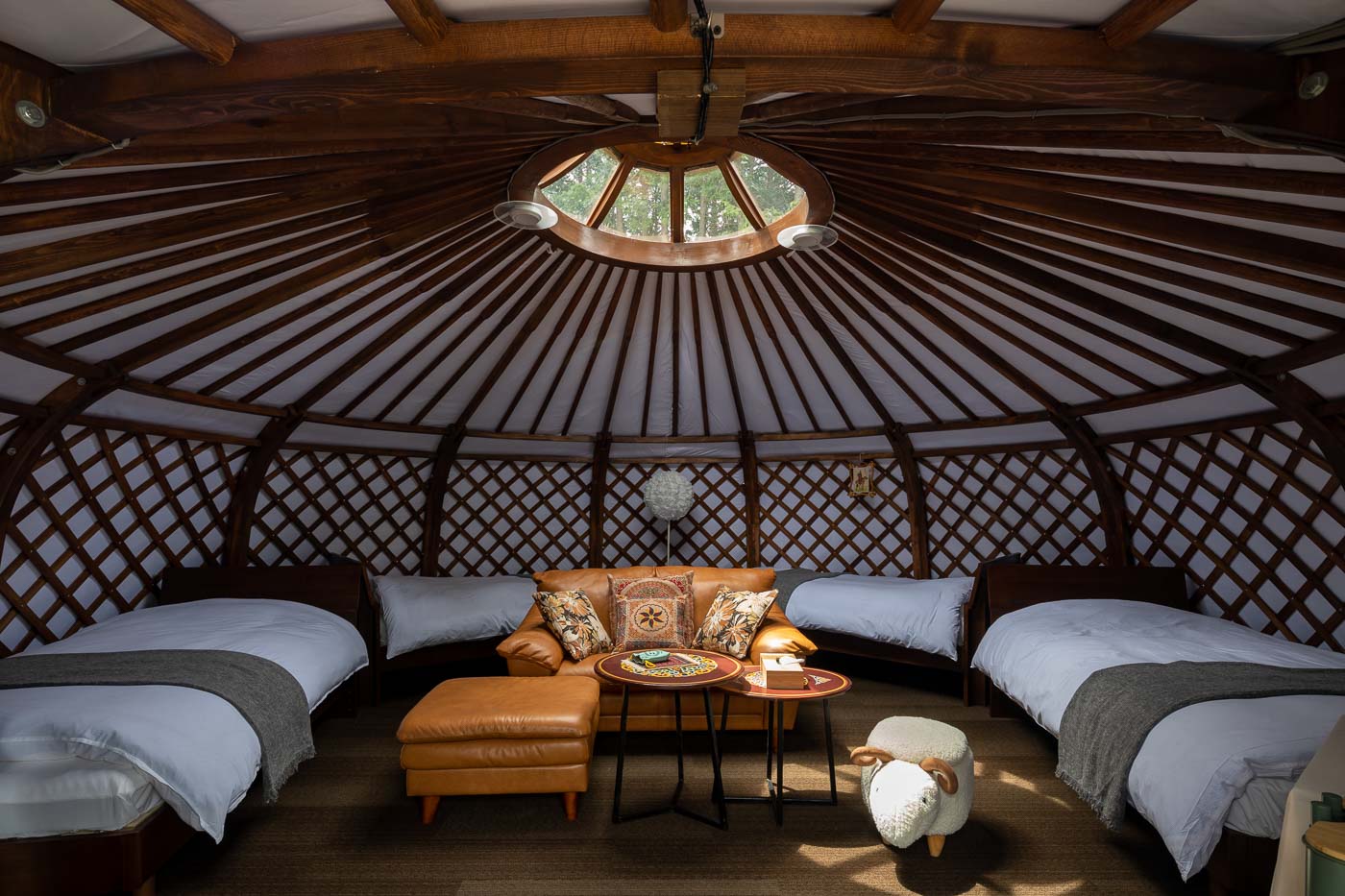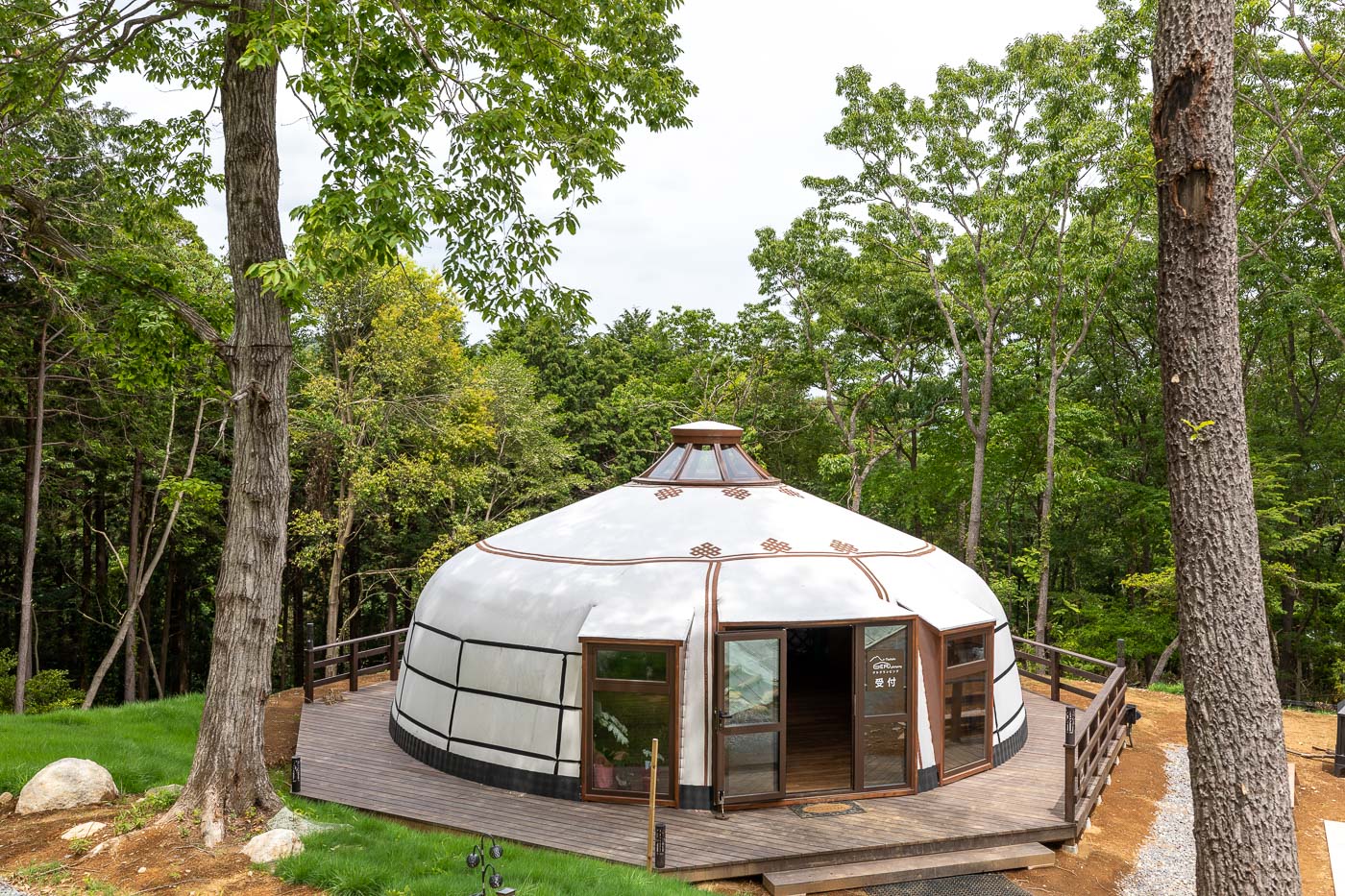 テント(以下、ゲル)はモンゴルより直輸入した、伝統的なゲル(移動式住居)を組み立てます。ゲルはモンゴル遊牧民の移動式住居で現在でも使われており、2013年にはユネスコの無形文化遺産に登録されています。なかでも当施設のゲルは、特殊な技術で作られている13世紀時代のモデルです。