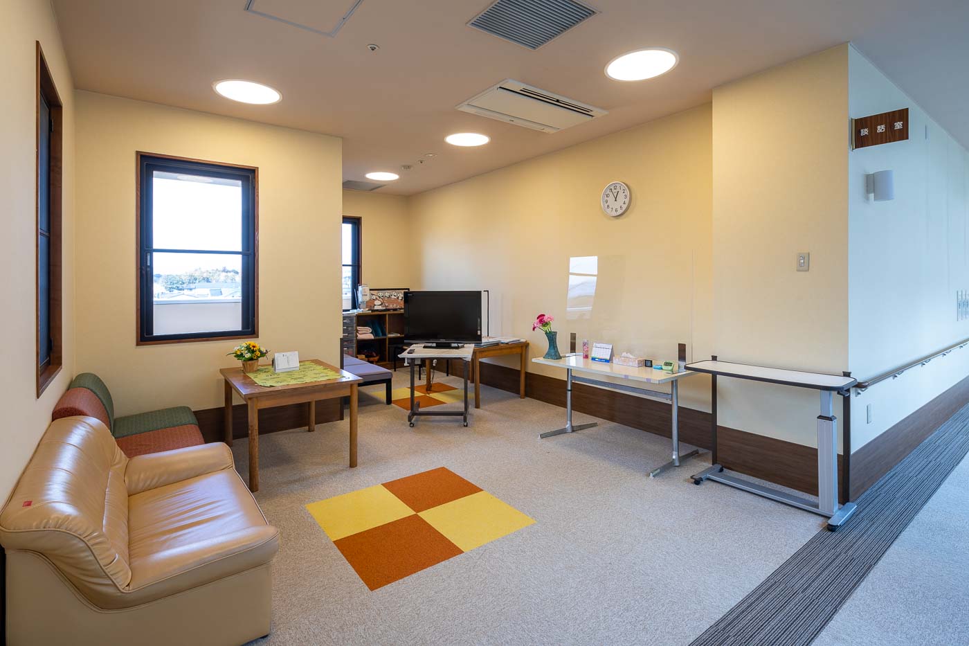 入居者のエリア(2・3・4階)は各療養室の内装及び家具、共用部の床・壁の改修。特別室のプランの変更、各階食堂の内装及びパントリーを改修しました。また御要望のあった入居者とご家族の懇談スペースや、カフェスタイルのスタッフ休憩室などを新たに設けました。