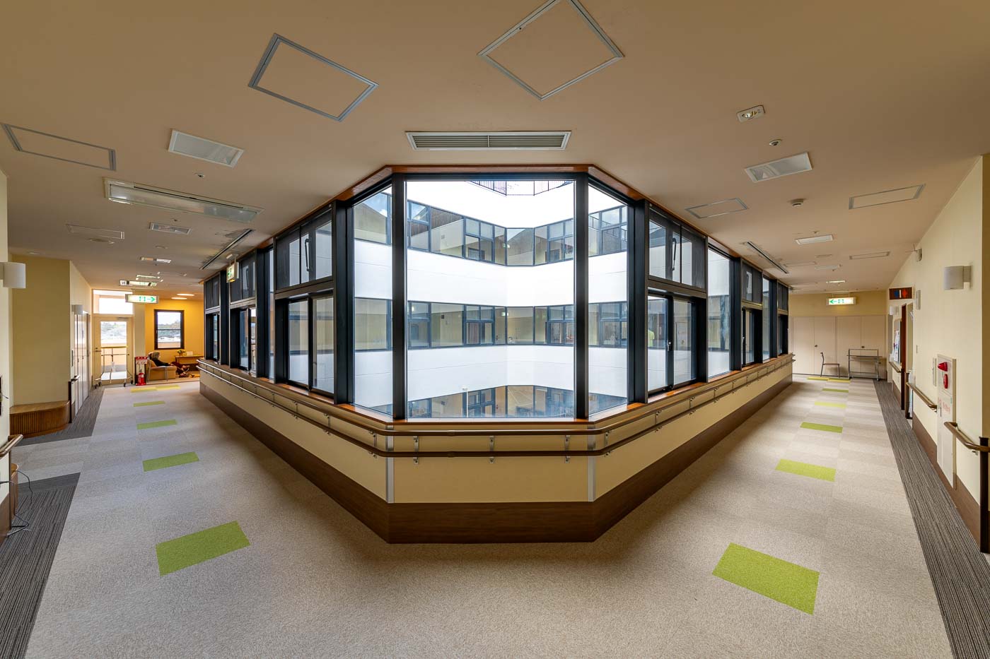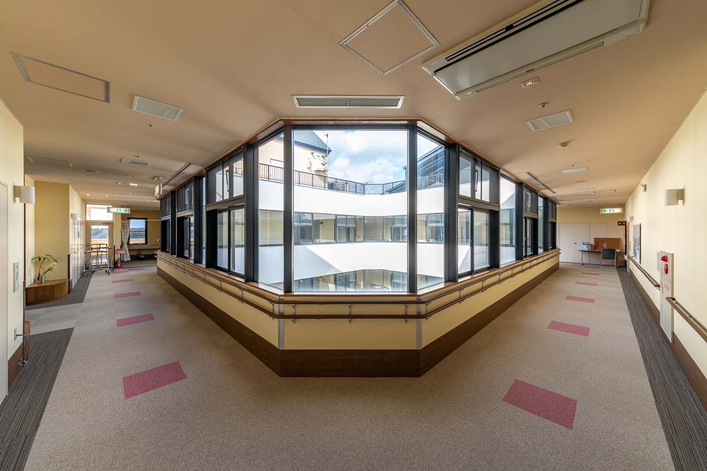 竣工から25年経過し利用者ニーズの変化、働き方改革、福祉医療機器の進化、省エネ化等への対応と、今後20年先の施設運営を目指して長寿命化工事が計画されました。設計にあたり、理事長はじめ現場スタッフの皆さまとヒアリングを重ね、改修箇所や必要な諸室をリストアップし、その中から優先順位を決めて設計に入り、具体的なデザインイメージ(元気で明るい)、仕様、予算、工事工程等を決定しました。