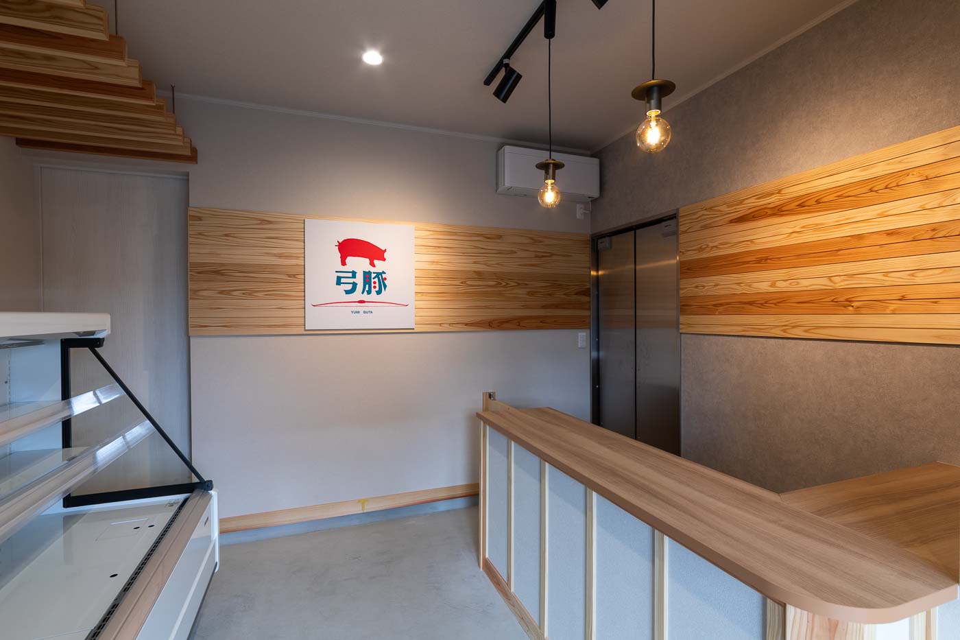 内装には杉材を用い、足を踏み入れた瞬間に木の香りと温もりに包まれる空間を構成。自然素材の素直な表情が主役である「弓豚」を引き立て、素材の力そのものがブランド価値を支える舞台となっています。